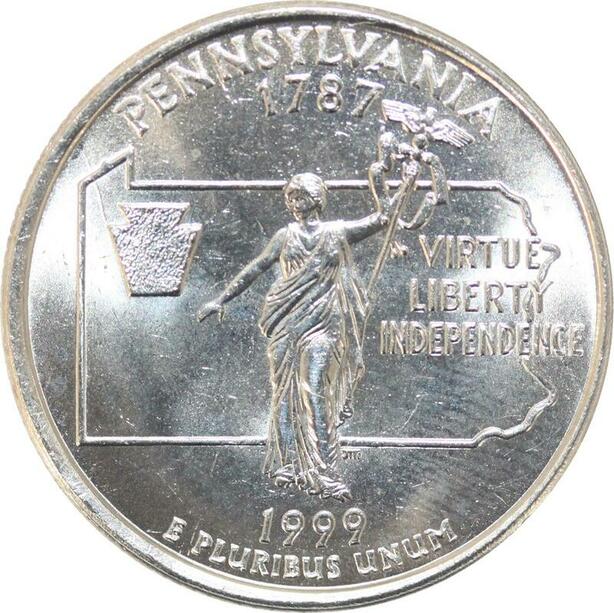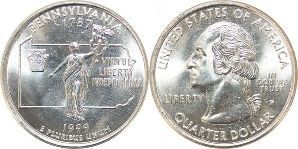 R1815 USA Pennsylvania Quarter 1/4 Dollar Liberty Independance 1787 1999 UNC