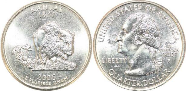 R1828 USA Kansas Quarter 1/4 Dollar Bison Liberty 1861 2005 UNC -> Make Offer