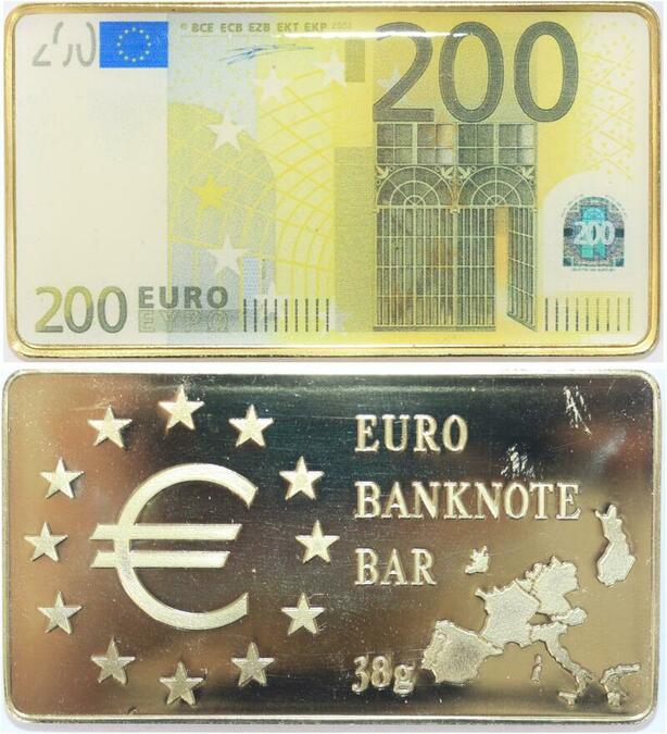 R1833 France Germany Monaco Vatican 200 Euros Banknote Gold Plated Bar UNC