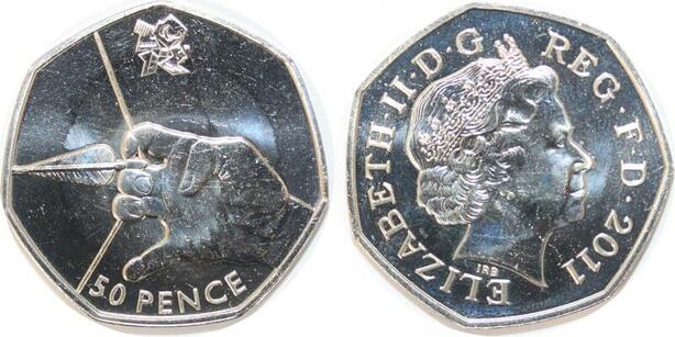 R1840 United Kingdom 50 Pence Elizabeth II Archery JO London 2011 UNC -> M Offer