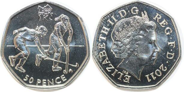 R1850 United Kingdom 50 Pence Elizabeth II Hockey JO London 2011 UNC -> M Offer
