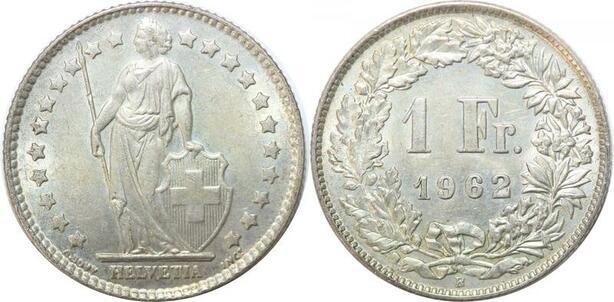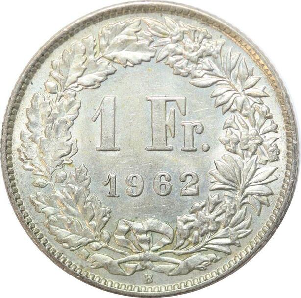 R1865 Suisse Switzerland 1 Franc Helvetia 1962 B Berne Silver AU+ -> Make Offer