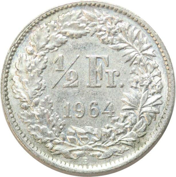 R1866 Suisse Switzerland 1/2 Franc Helvetia 1964 B Berne Silver UNC > Make Offer