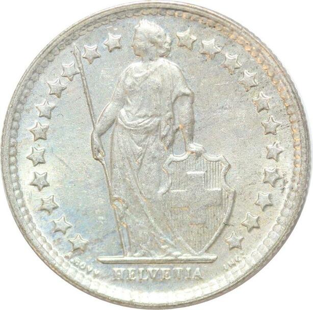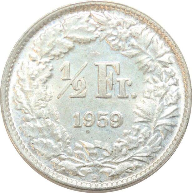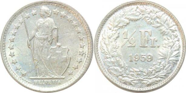 R1868 Suisse Switzerland 1/2 Franc Helvetia 1959 B Berne Silver UNC > Make Offer