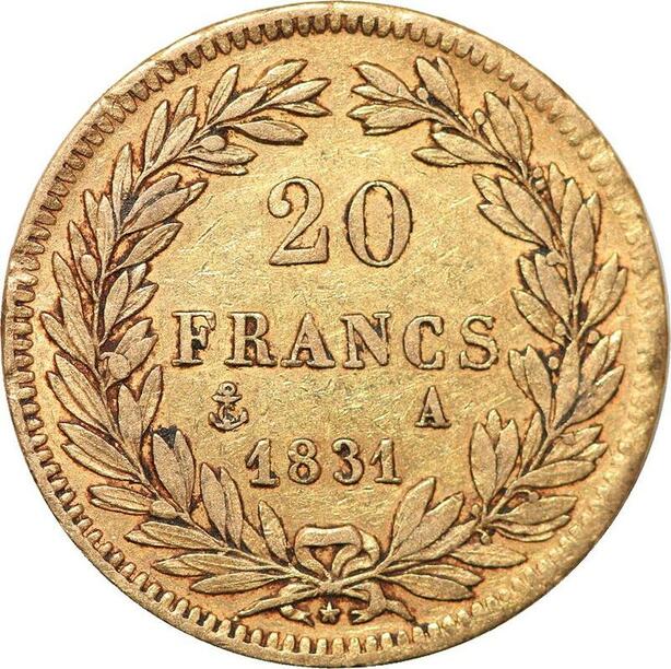 R1879 Rare France 20 Francs Louis Philippe I 1831 A Paris Relief Or Gold ->Offer