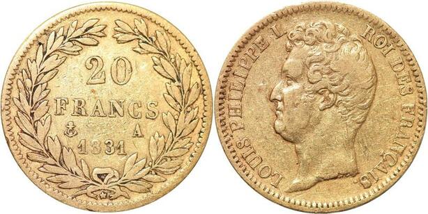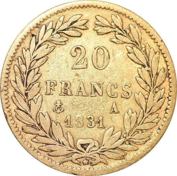 R1880 Rare France 20 Francs Louis Philippe I 1831 A Paris Relief Or Gold ->Offer