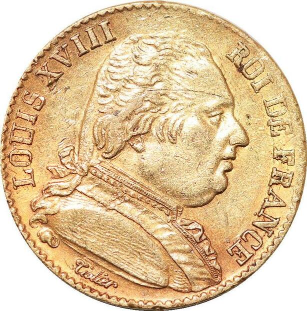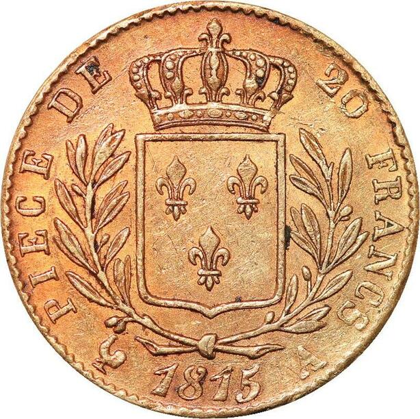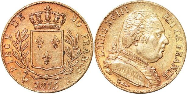 R1893 Rare France 20 Francs Louis XVIII 1815 A Paris Or Gold Patine -> M Offer
