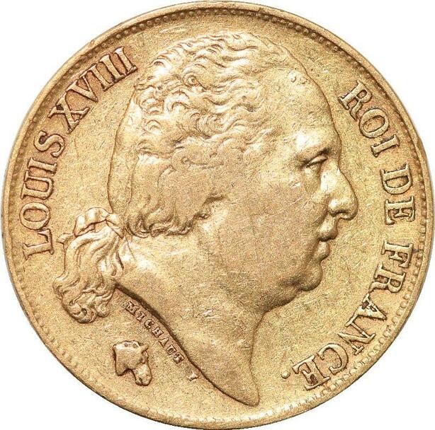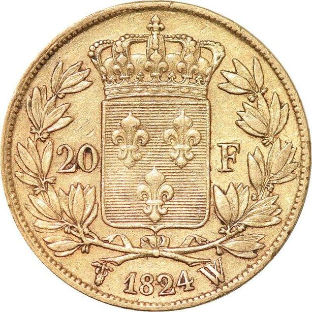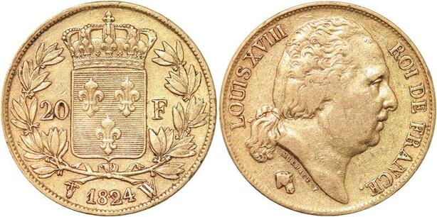 R1900 Rare Error France 20 Francs Louis XVIII 1824 18(9)4 W Lille Or Gold >Offer