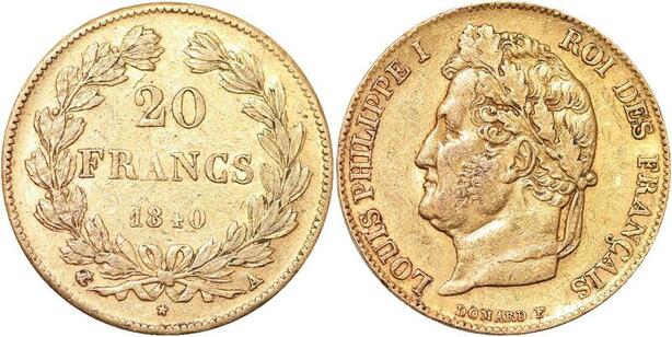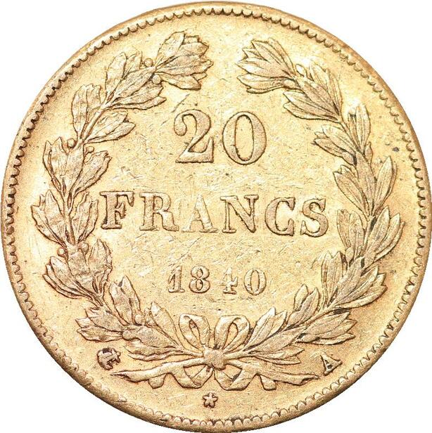 R1913 Rare France 20 Francs Louis Philippe 1840 A Paris Or Gold -> Make Offer
