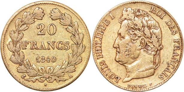 R1916 Rare France 20 Francs Louis Philippe 1840 A Paris Or Gold -> Make Offer