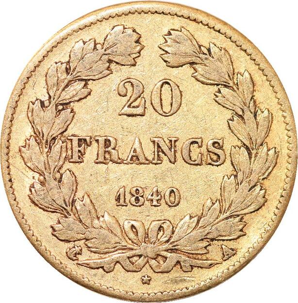 R1919 Rare France 20 Francs Louis Philippe 1840 A Paris Or Gold -> Make Offer