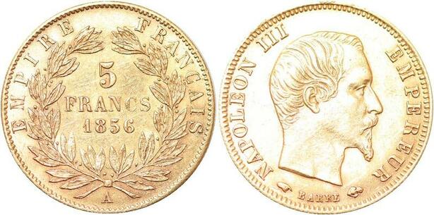 R1927 Rare France 5 Francs Napoléon III 1856 A Paris Or Gold AU -> Make Offer