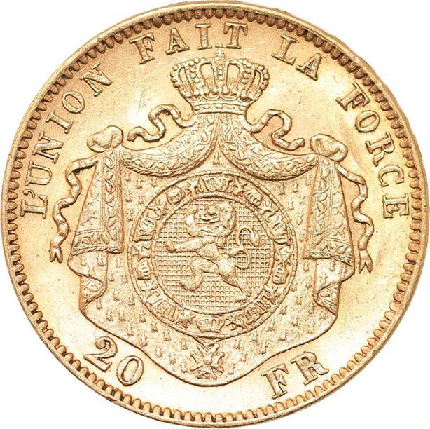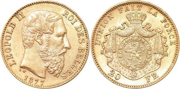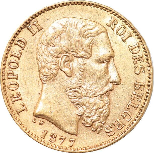 R1932 Rare Belgium 20 Francs Leopold II 1877 Or Gold UNC -> Make Offer