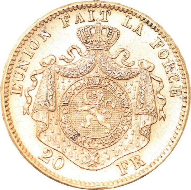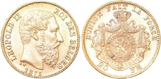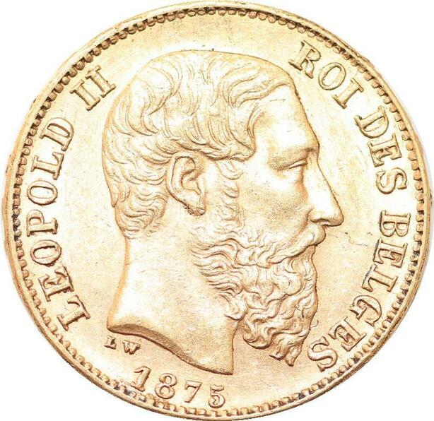 R1935 Rare Belgium 20 Francs Leopold II 1875 Or Gold UNC -> Make Offer