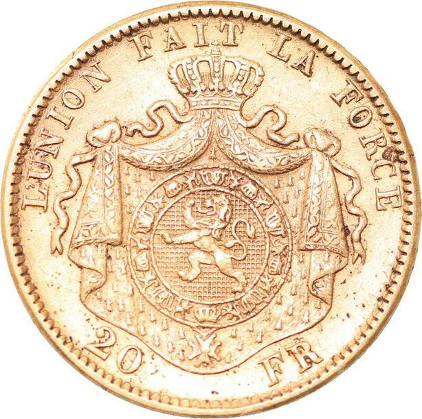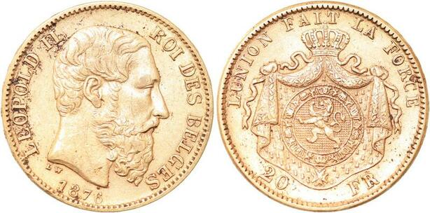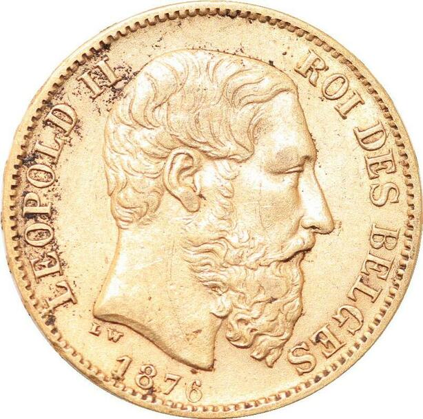 R1936 Rare Belgium 20 Francs Leopold II 1876 Or Gold AU -> Make Offer