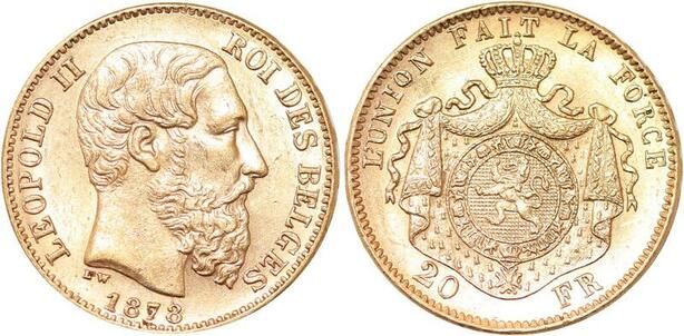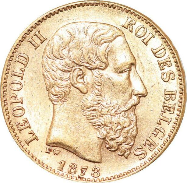 R1939 Rare Belgium 20 Francs Leopold II 1878 Or Gold UNC -> Make Offer