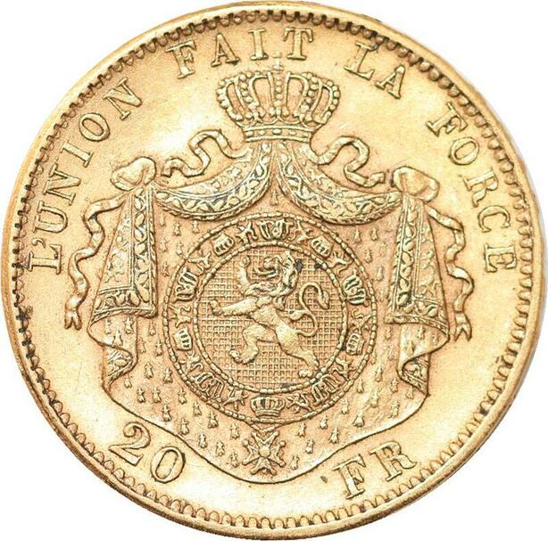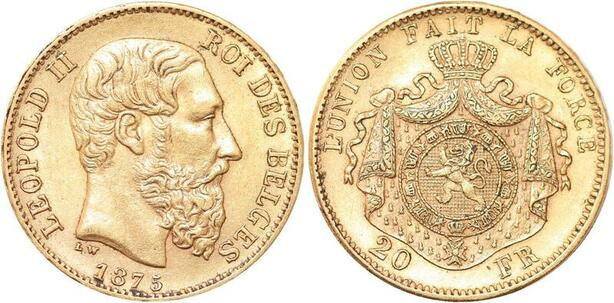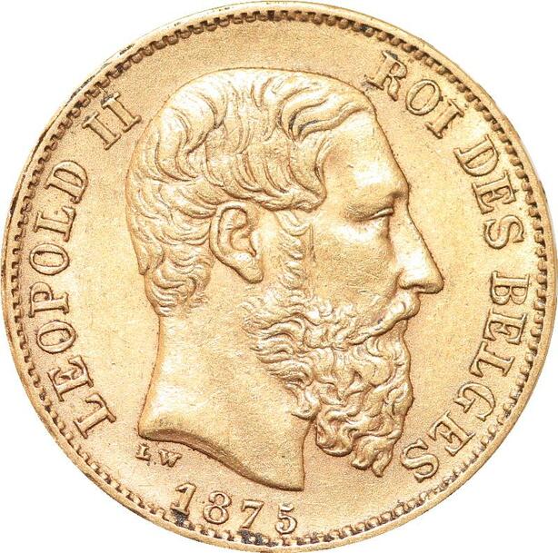 R1942 Rare Belgium 20 Francs Leopold II 1875 Or Gold AU -> Make Offer