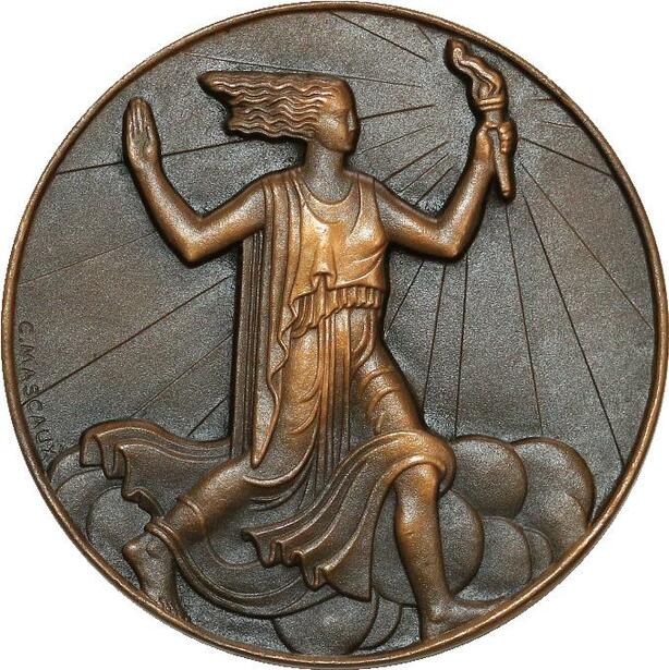R1966 Rare Médaille Art Déo Flamme Olympique JO Paris Mascaux 1924 SUP