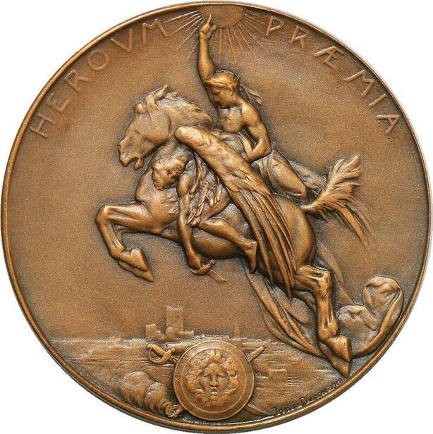 R1969 Rare Médaille Belgium Herovm Praemia Art Pegasus WWI Fonson Dupon SUP