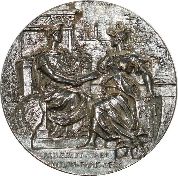 R1974 Rare Medal Russia Arrivée Russe Toulon Cronstadt 1893 Bottee Silvered AU