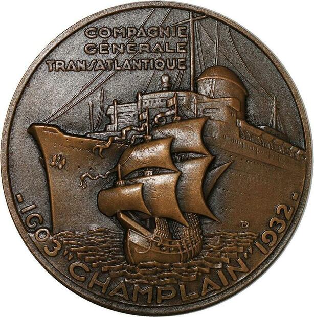 R2130 Rare Médaille Quebec Paquebot Champlain Transatlantique 1932 Delamarre SPL