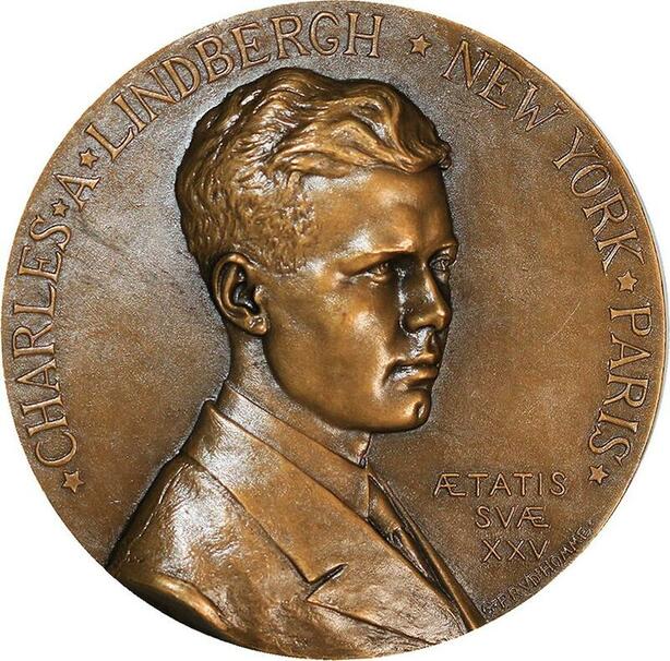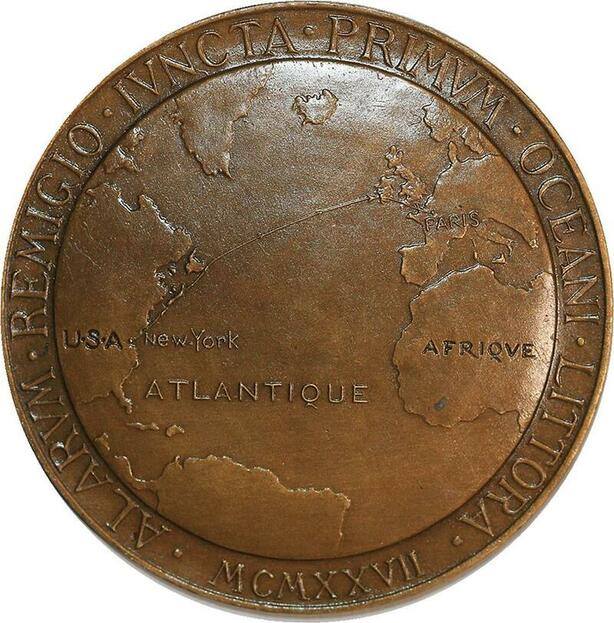 R2131 Rare USA Medal Aviator Lindbergh New York Paris 1927 Prud'Homme UNC