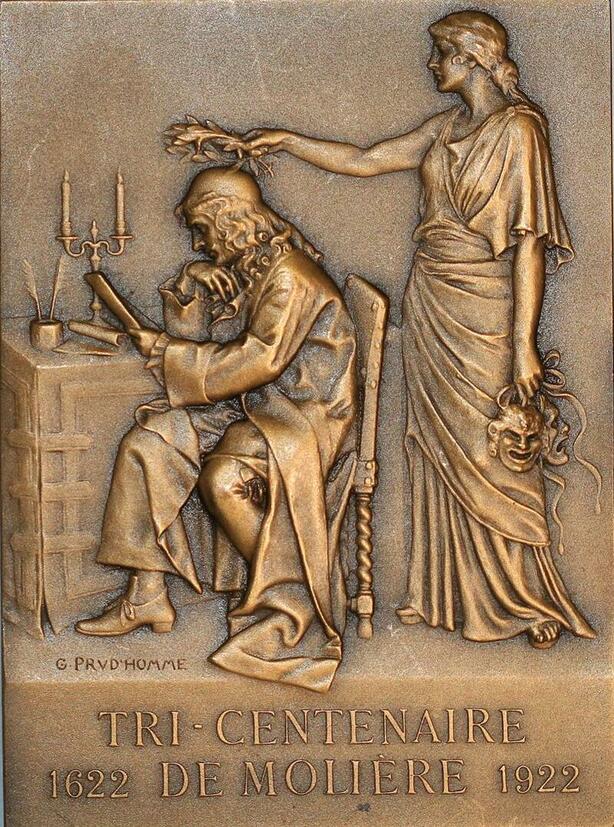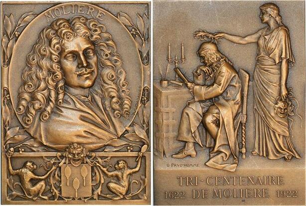 R2157 Rare Médaille Tricentenaire 300 ans Molière 1922 Paris Prud'homme SPL
