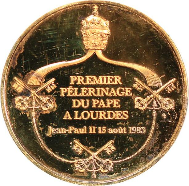 R2192 Médaille Premier Pélerigane Pape Lourdes 1983 Vermeil Proof BE > M offer