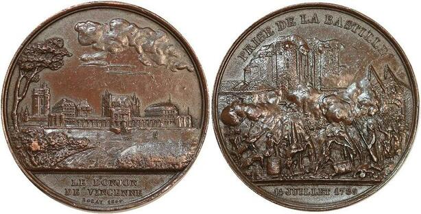 R2201 Rare Médaille France Prise Bastille Donjon Vincenne 1789 1844 Rogat SUP