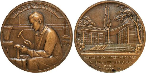 R2210 Médaille Expo Internationale Orfevrerie Arts Techniques 1937 Monier SUP