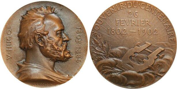 R2212 Médaille France Victor Hugo Centenaire Naissance Chaplain 1802 1902 SPL