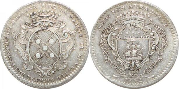 R2281 Rare Jeton Bretagne Jean-François Vedier Maire 1732 Nantes Argent SUP