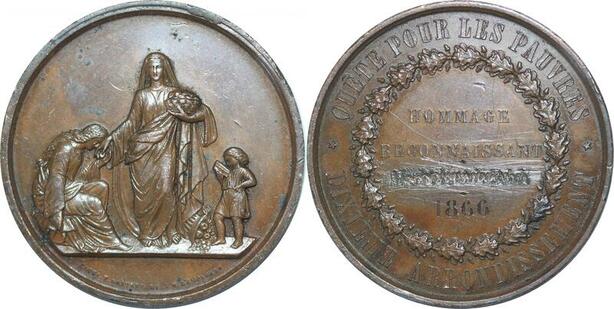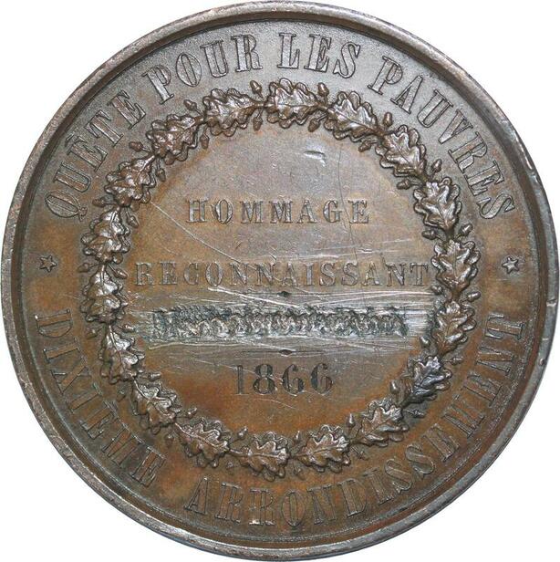 R2314 Médaille Quète pour les pauvres Hommage Reconnaissant Caqué 1866 Paris