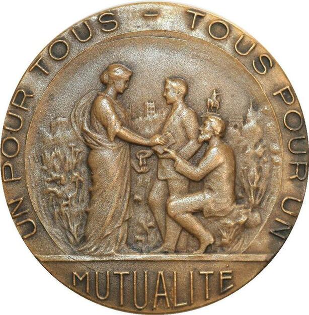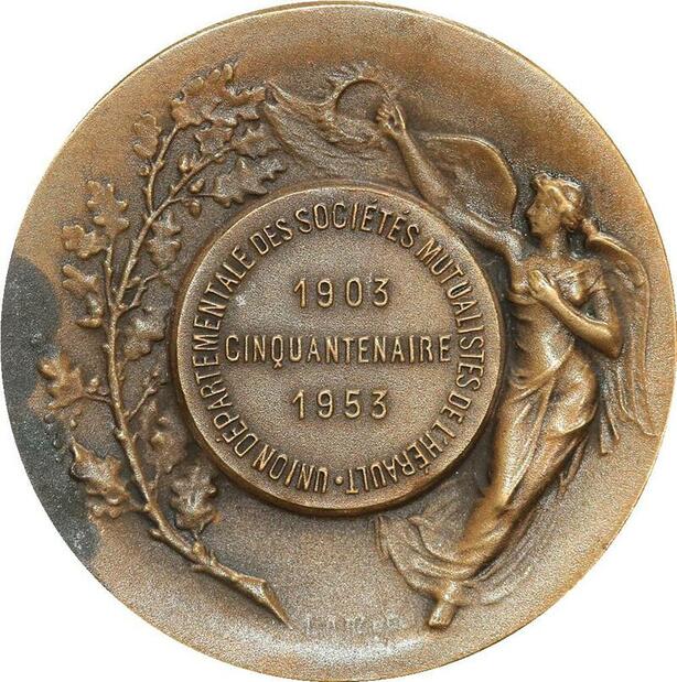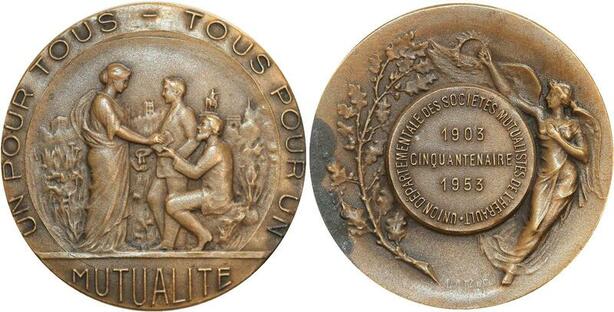 R2338 Médaille 50 ans 1903 1953 Un pour tous Mutualité Tous pour un Hérault