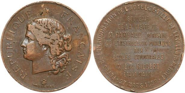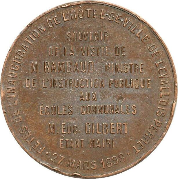 R2343 Médaille Levallois Perret Inauguration Hotel de Ville 1878 Rambaud
