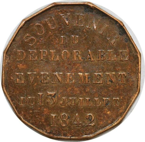 R2355 Médaille France Duc D'Orléans Souvenir Déplorable Evènement 1842 SUP