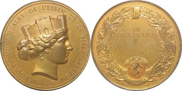 R2369 Coffret Médaille Ecoles Dessin Beaux Arts Poncet Lyon Vermeil SUP >Offer