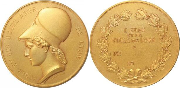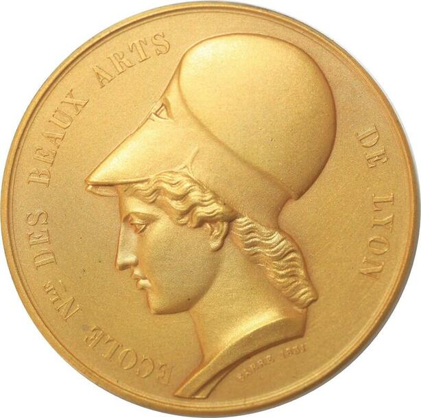 R2372 Rare Coffret Médaille Athena Ecole Beaux Arts Lyon Barre 1831 Vermeil SUP