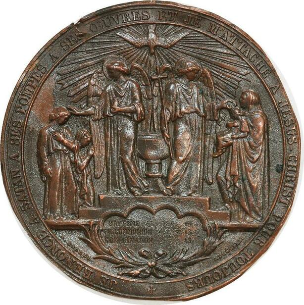 R2388 Médaille Cliché Uniface Baptème Confirmation Satan Borrel -> Make Offer