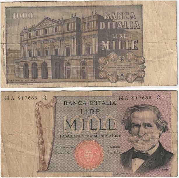 R2410 Banknote Italy 1000 Lire Verdi Pagabili Vista Al Portatore 1969 ->Offer