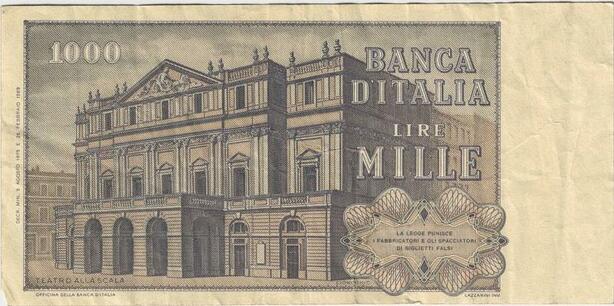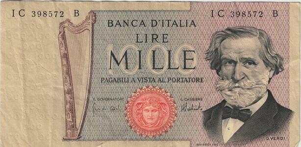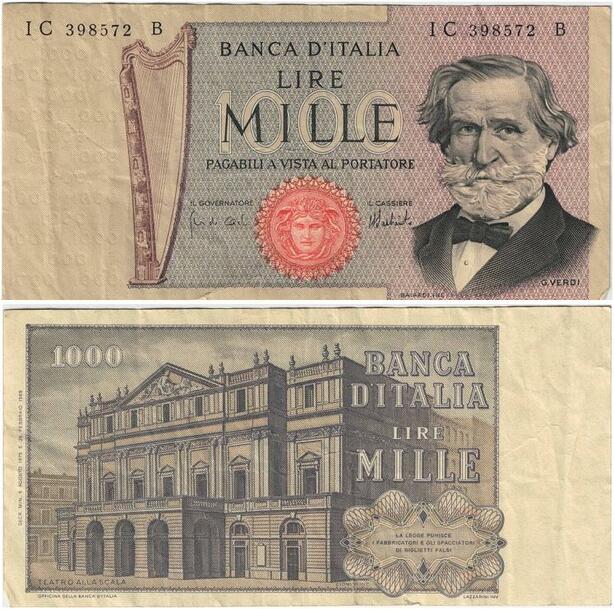 R2411 Banknote Italy 1000 Lire Verdi Pagabili Vista Al Portatore 1969 AU >Offer