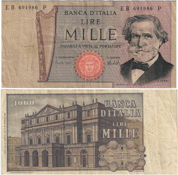 R2417 Banknote Italy 1000 Lire Verdi Pagabili Vista Al Portatore 1969 ->Offer