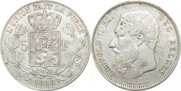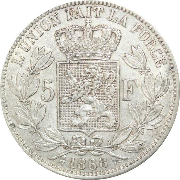 R2452 Belgique 5 Francs Léopold II 1868 Argent -> Make offer