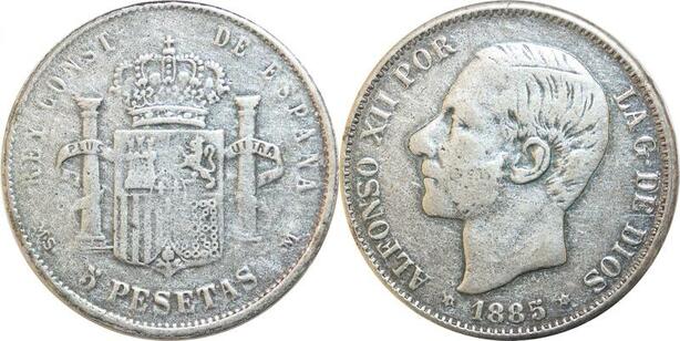 R2531 Fake Spain 5 Pesetas Alfonso XII 1885 MS M Madrid Silver -> Make Offer