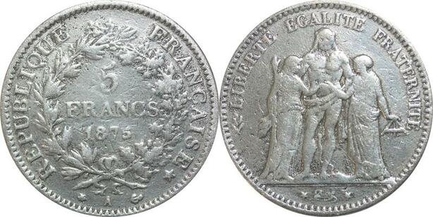 R2633 Faux d'époque 5 Francs Hercule 1875 A Paris Argent -> Make Offer