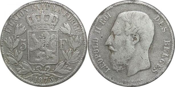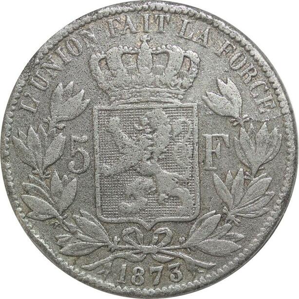 R2664 Faux d'époque Belgium 5 Francs Leopold II 1873 Argent -> Make Offer