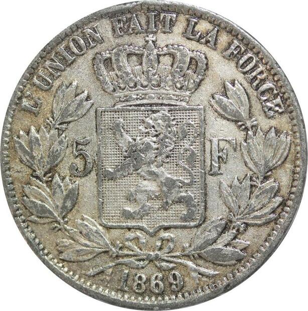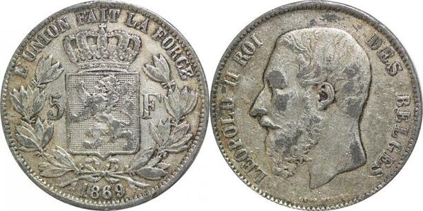 R2665 Faux d'époque Belgium 5 Francs Leopold II 1869 Argent -> Make Offer