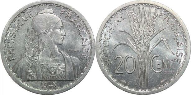 R2679 French Indochina 20 Cents 1945 C Castelsarrasin Turin AU +-> Make Offer