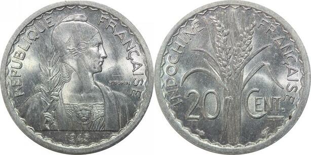 R2680 French Indochina 20 Cents 1945 C Castelsarrasin Turin UNC -> Make Offer