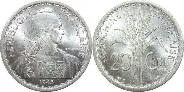 R2682 French Indochina 20 Cents 1945 C Castelsarrasin Turin UNC -> Make Offer